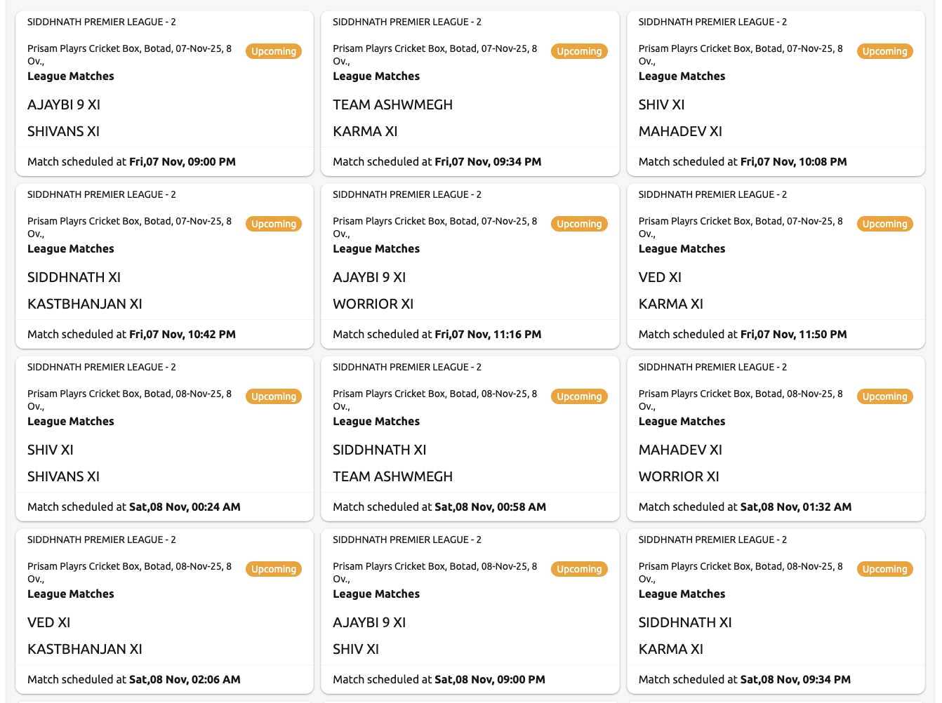 સમાજના યુવાનો અને ક્રિકેટપ્રેમીઓ માટે સિદ્ધનાથ પ્રીમિયમ લીગ (SPL 2025) દ્વારા બોક્સ ક્રિકેટ ટુર્નામેન્ટનું ભવ્ય આયોજન કરવામાં આવ્યું છે. આ ટુર્નામેન્ટ 7, 8 અને 9 નવેમ્બર 2025ના રોજ રાત્રે 9 વાગ્યે પ્રીઝમ બોક્સ ક્રિકેટ, તાજપર રોડ, બોટાદ ખાતે યોજાશે. 📍 સ્થળ: પ્રીઝમ બોક્સ ક્રિકેટ, તાજપર રોડ, બોટાદ 📅 તારીખ: 7, 8 અને 9 નવેમ્બર 2025 🕘 સમય: રાત્રે 9 વાગ્યે ટુર્નામેન્ટમાં કુલ 10 ટીમો ભાગ લેશે, જે બે ગ્રુપમાં વહેંચવામાં આવી છે. દરેક ગ્રુપમાંથી ટોચની ટીમો ચાર નોકઆઉટ મેચોમાં મુકાબલો કરશે અને અંતે યોજાશે ફાઇનલ મેચ, જ્યાં સિદ્ધનાથ પ્રીમિયમ લીગ 2025ના વિજેતાનું તાજ કોઈ એક ટીમને મળશે. 🏆 આ કાર્યક્રમનો હેતુ સમાજના સભ્યોમાં રમતની ભાવના, એકતા અને ભાઈચારો વધારવાનો છે. ખેલાડીઓ માટે આ માત્ર રમત નહીં, પણ સમાજભાવનાનો ઉત્સવ બની રહેશે. સૌ સમાજસભ્યોને પરિવાર સાથે ઉપસ્થિત રહી ટીમોને ઉત્સાહ આપવા હાર્દિક આમંત્રણ પાઠવવામાં આવે છે. “જીત એ ટીમની નહી, આખા સમાજની હશે!” - સિદ્ધનાથ પ્રીમિયમ લીગ કમિટી લાઈવ સ્કોર અને વધુ ડીટેલ માટે લિંક ઓપન કરો https://cricheroes.com/tournament/1672031/siddhnath-premier-league-2/matches/live-matches સંપર્ક ડૉ. કિશનભાઇ પરમાર 6355453235